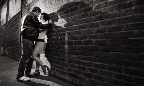 Used flash to backlight Hannah & Colin and I love the shadow on the wall!